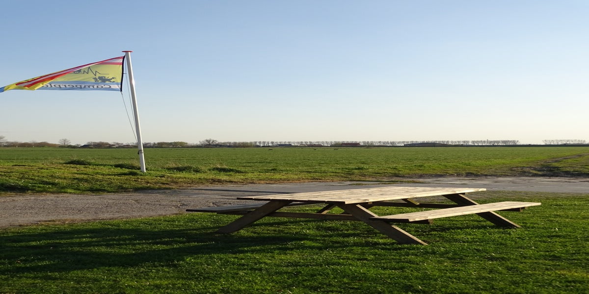 de camperplaats ligt aan de rand van ons boerenerf, met zicht op de weidse polder.